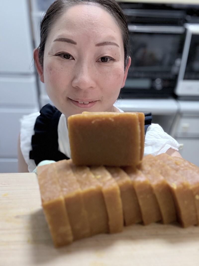 牛乳パックから出して切り分けました。