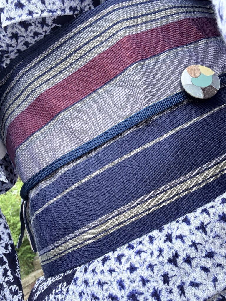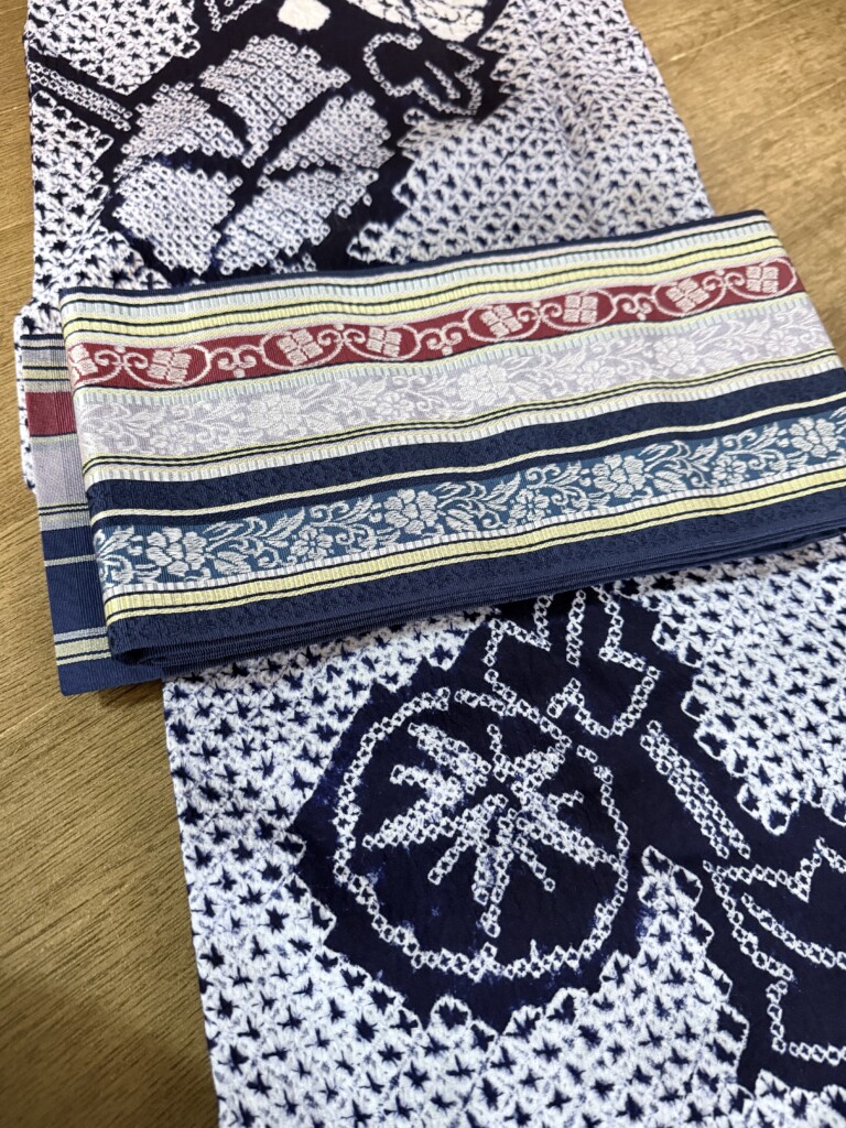 有松絞りの浴衣と博多帯。