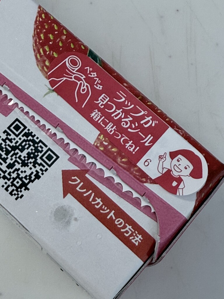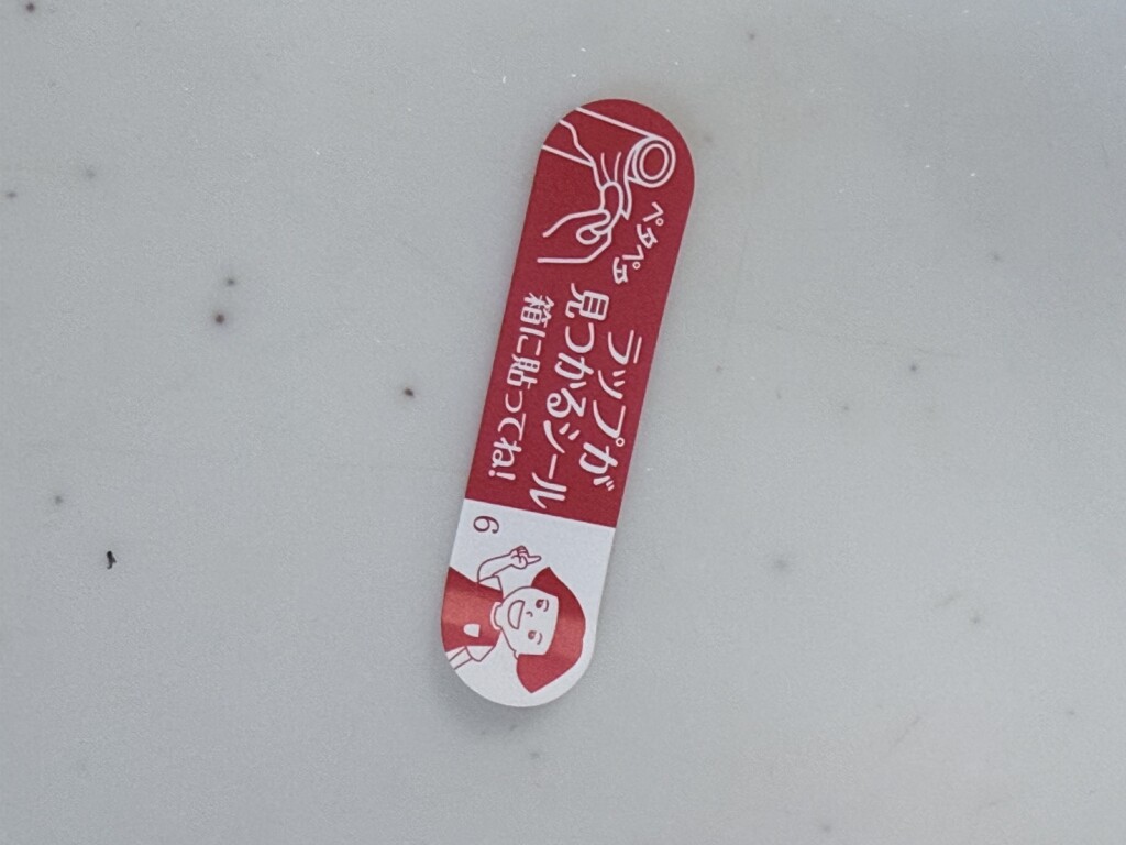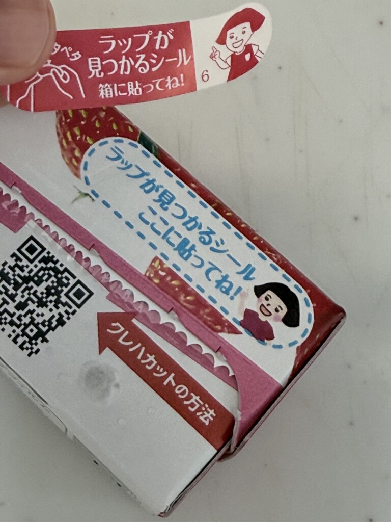 箱を開けたら、ラップにシールがついています。