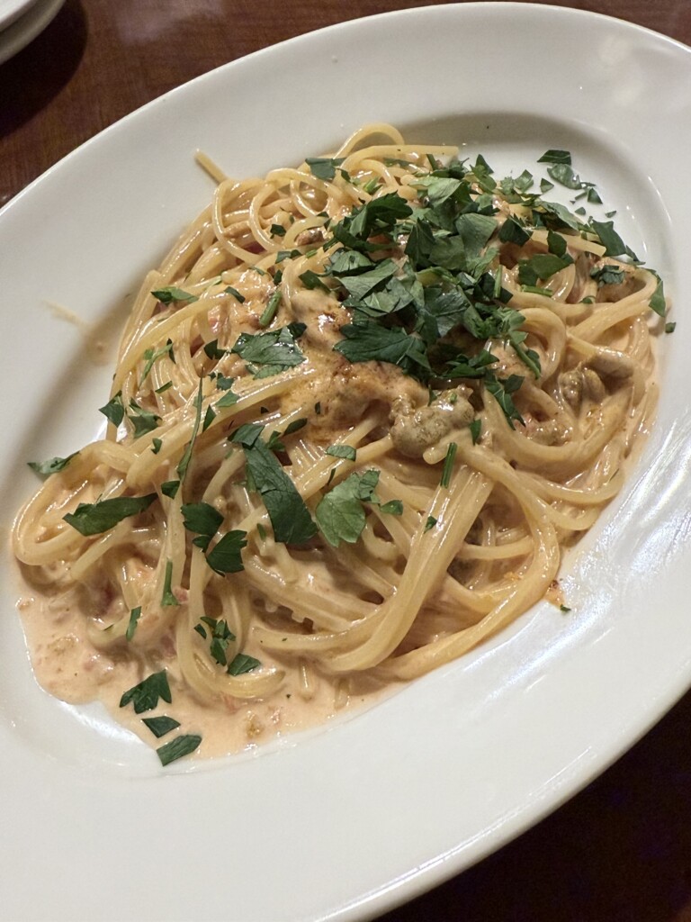 ウニのトマトクリームパスタ。
