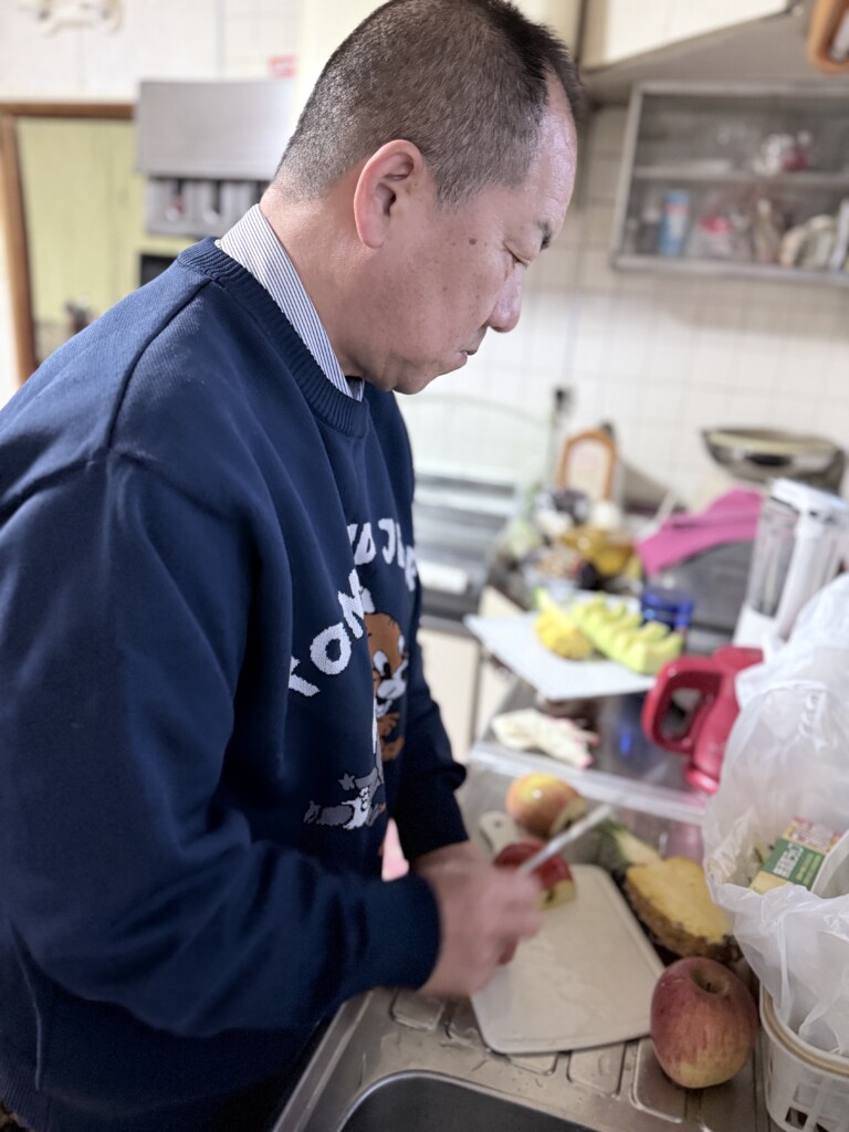 フルーツ盛りを作る直樹先生。