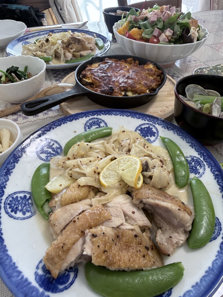 鶏もも肉ときのこジャガイモのマスタードクリーム煮